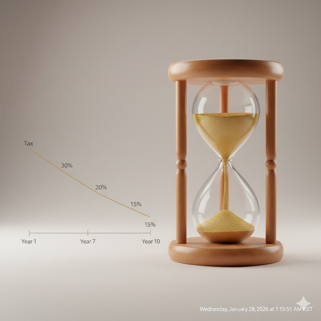 가령 내가 내야 할 퇴직소득세가 1,000만 원이라고 가정해 봅시다. 일시금으로 받으면 1,000만 원을 그대로 세금으로 내야 하지만, 연금으로 10년 이상 나누어 받으면 초기 10년 동안은 700만 원만 내면 되고(300만 원 절세), 11년 차부터는 600만 원 수준으로 세금이 더 줄어듭니다.