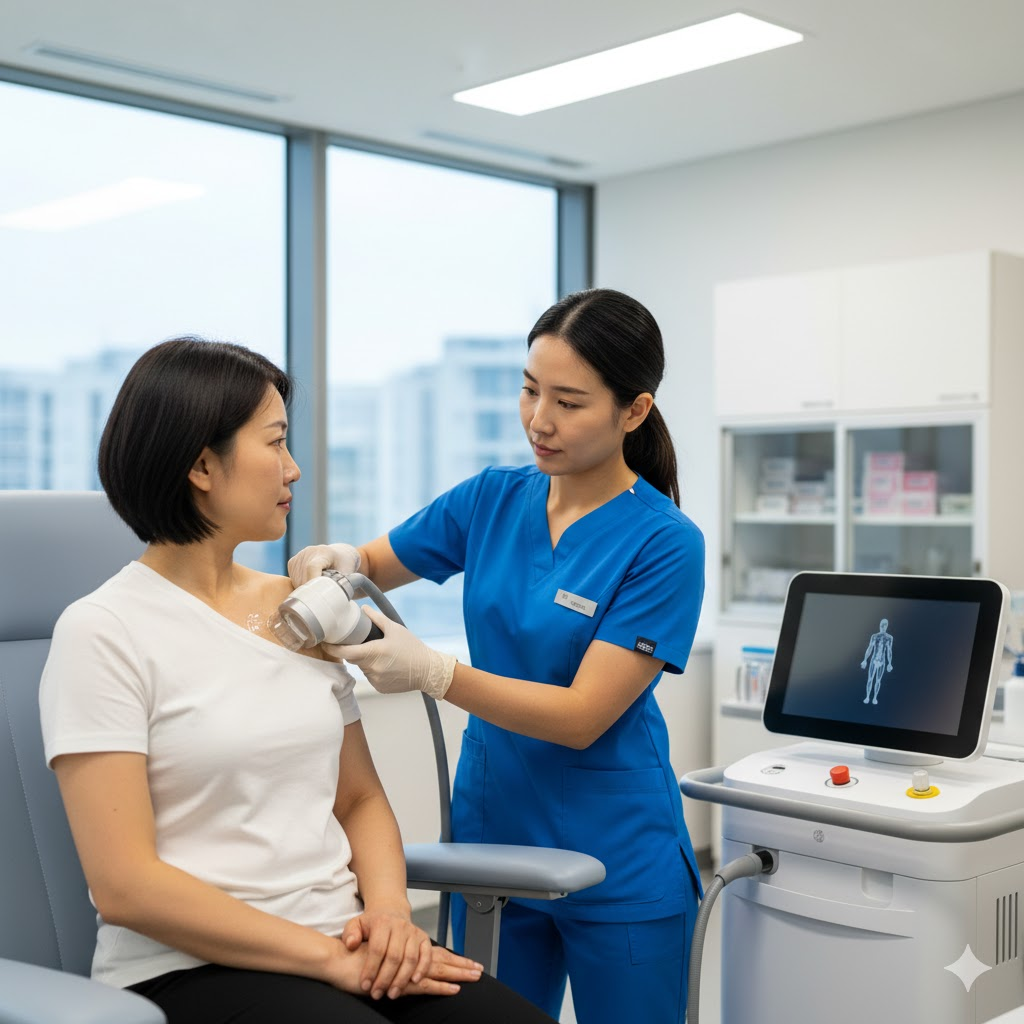 환자의 상태에 따라 다르지만, 보통 일주일 간격으로 3~5회 정도 시행합니다. 1회 치료만으로 통증이 드라마틱하게 줄어들기보다는, 회차를 거듭하며 서서히 석회가 분해되고 염증이 가라앉는 것을 체감하게 됩니다.