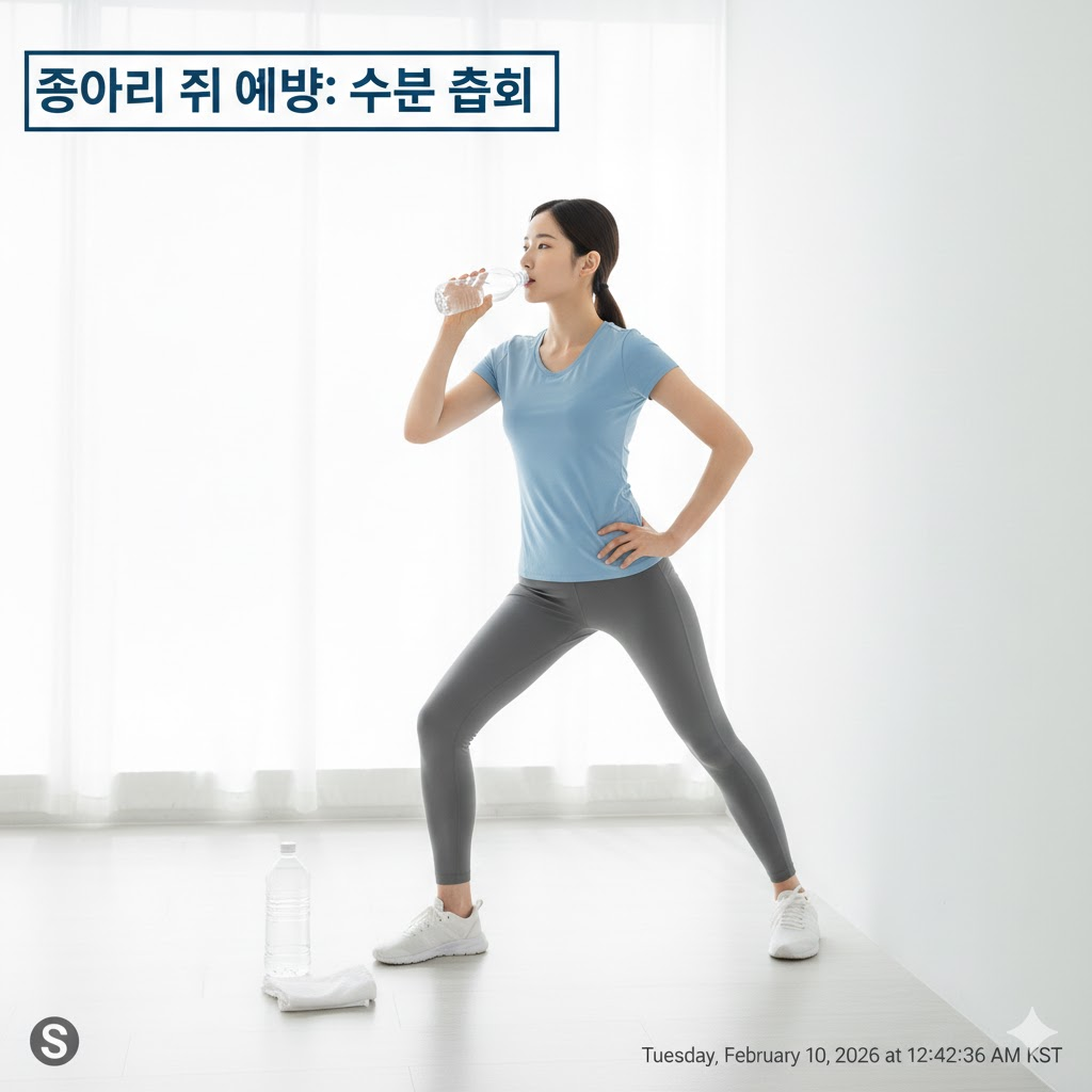 - 자기 전 '5분 스트레칭': 밤에 쥐가 자주 난다면 취침 전 종아리 근육을 충분히 늘려주는 스트레칭을 루틴화하세요. 이는 신경의 과흥분을 가라앉히는 효과가 있습니다.